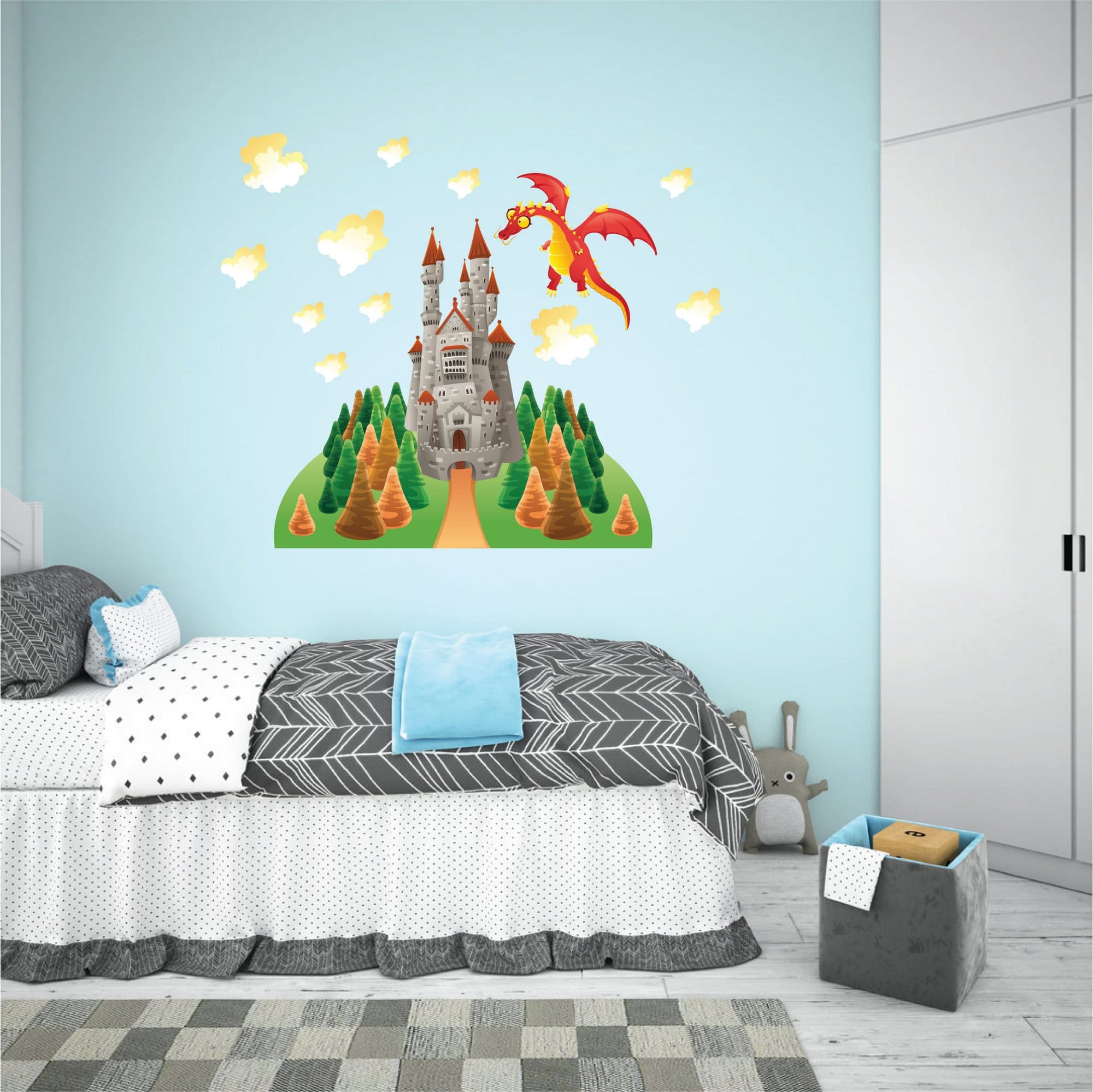 Ένα τέλειο ιδανικό σχέδιο για το δικό σας παιδί, είναι και το Παιδικό Αυτοκόλλητο Τοίχου Κάστρο και Δράκος – Decotek 18986