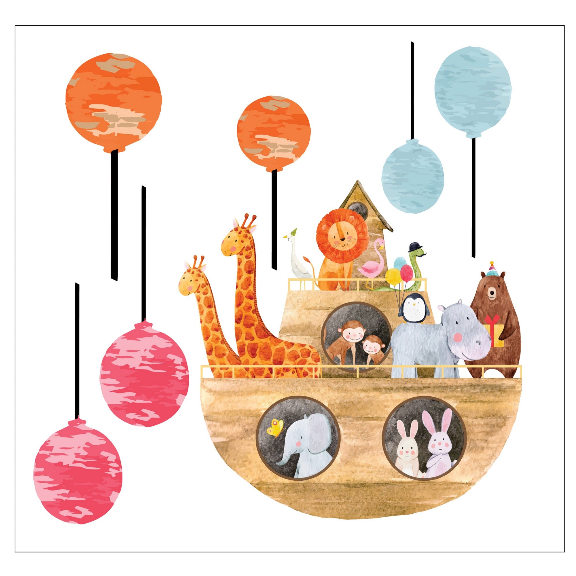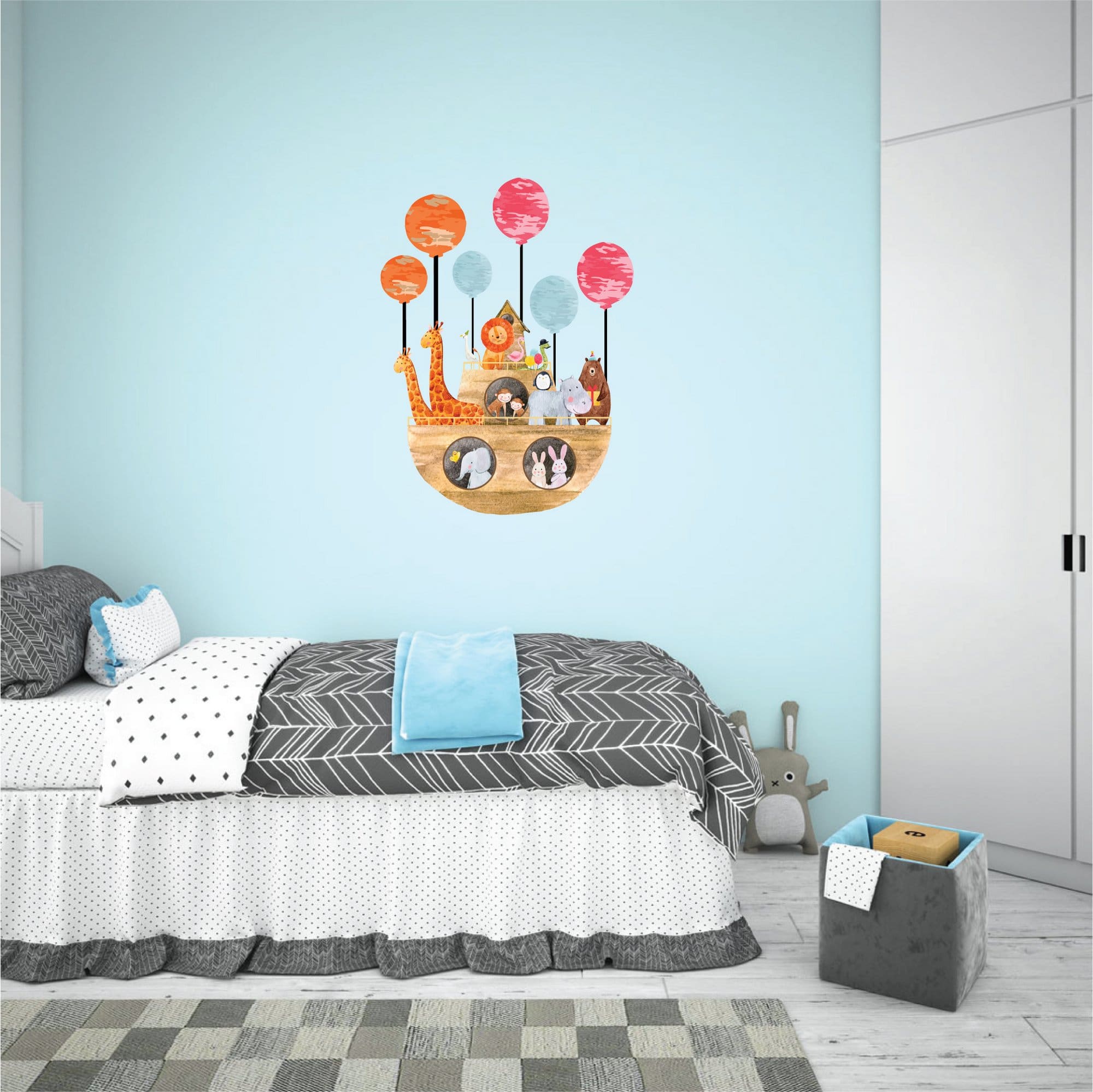 Παιδικό Αυτοκόλλητο Τοίχου Μπαλόνια και Κιβωτός με Ζωάκια – Decotek 18991
