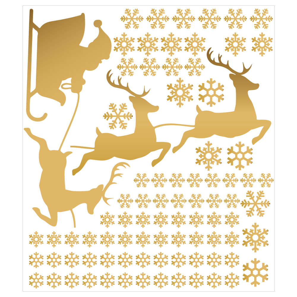 Με το Χριστουγεννιάτικο αυτοκόλλητο τοίχου Άγιος Βασίλης Χρυσό, θα δώσετε μία όμορφη νότα στο χώρο σας για τις αγαπημένες μέρες των Χριστουγέννων. Οι διαστάσεις είναι 73*54εκ το Έλκηθρο, οι Τάρανδοι 61*45εκ και οι Χιονονιφάδες 4-6εκ διάμετρο και θα τα παραλάβετε σε μια καρτέλα 110×130. Αν θέλετε άλλες διαστάσεις για το Χριστουγεννιάτικο Αυτοκόλλητο παρακαλώ επικοινωνήστε μαζί μας στο 2310 579 990.