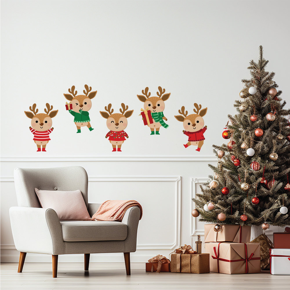 Χριστουγεννιάτικο Αυτοκόλλητο Χαριτωμένοι Τάρανδοι – Decotek 100123